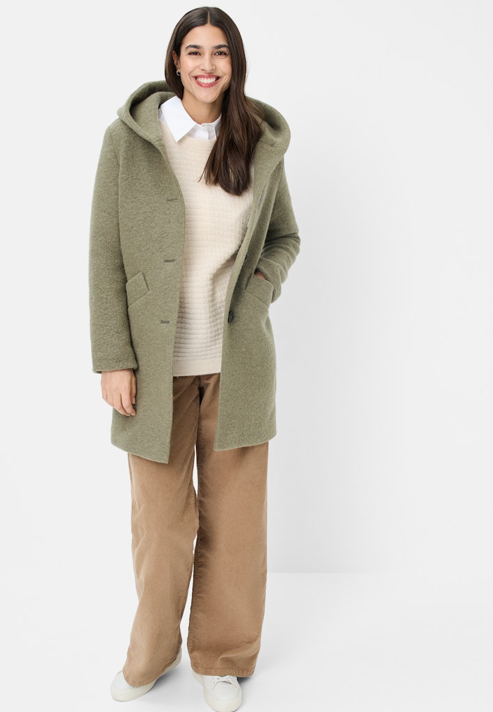 Strickkurzmantel, angeschnittene Kapuze, Pattentaschen, Made in Europe