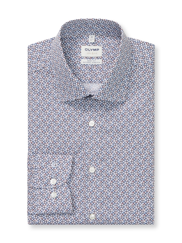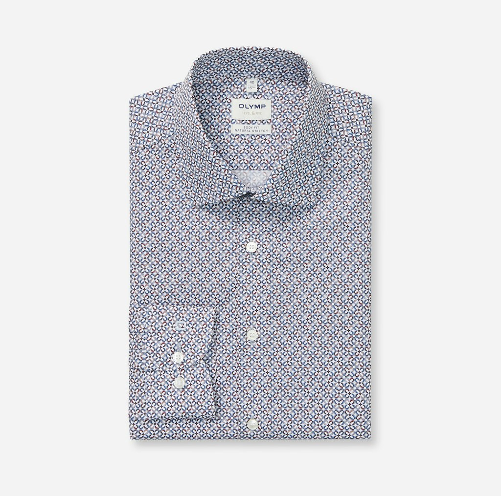Sympathische Musterunterbrechung im Office. Das OLYMP Level Five für sportaffine Businessmänner bietet stilvolle Performance in körperbetonter Linie. Natürlich dehnbare Baumwollgarne sorgen für knitterfreie Bestform und hautsympathisches Tragegefühl. Der modische New York Kent harmoniert zum lässig gerundeten Saum. Besonders bügelleicht.