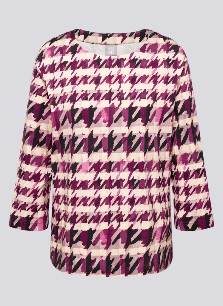 Diese weich fallende Bluse begeistert mit einem auffälligen, großflächigen Muster und legerem Schnitt. Reine Baumwolle sorgt für ein angenehmes Tragegefühl, die 3/4-Ärmel runden den Look modisch ab. Weiter Rundhalsausschnitt. Reine Baumwollqualität. Abstraktes Hahnentritt-Dessin. 3/4-lange Ärmel. Trageangenehm und pflegeleicht.