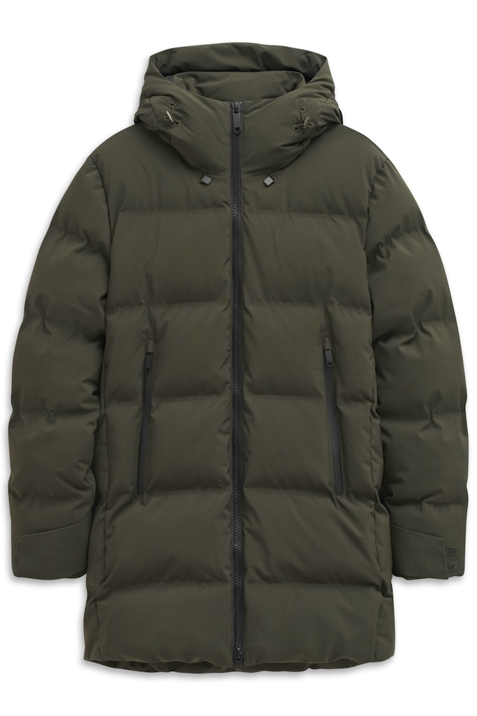 Moderner Parka mit verklebter Steppoptik und angeschnittener Kapuze sowie langen Reißverschlusstaschen. Gefüllt mit Sorona Fasern. Innen ein ganzes Futter mit Innentaschen. Der Artikel mit stretch ist zu 100% recycelt und ist wasserfest (5000mmH2O), windundurchlässig, atmungsaktiv und ist PFC frei.