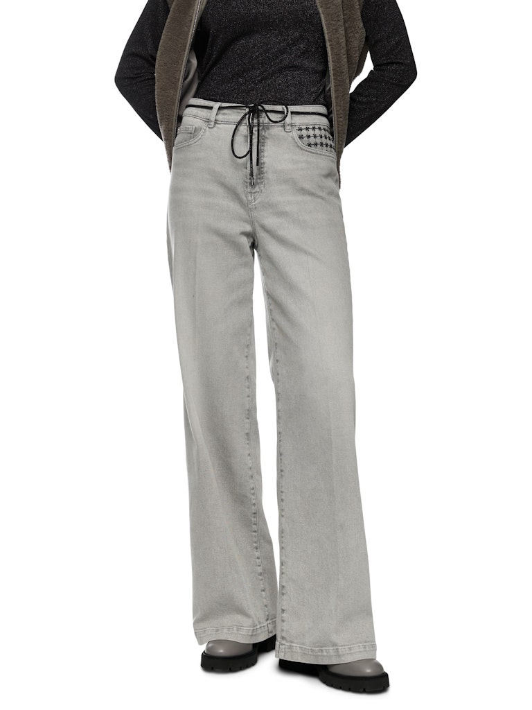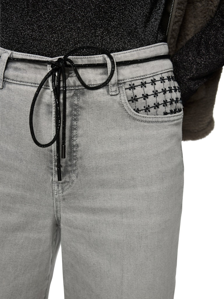 Jeans WARRI im Wide Fit mit Stickerei|Die Jeans WARRI im angesagten Wide Fit mit High Waist schmeichelt jeder Figur. Aus bequemem Baumwollstretch gefertigt, sorgt sie für hohen Tragekomfort. Highlight: Eine zarte Blüten-Stickerei an der Tasche und eine dekorative Kordel als Gürtel. Ideal für stilvolle Casual-Looks mit femininer Note.|Weite Form|Hoher Bund|Verzierung an der Tasche|WARRI - WIDE FIT - Beinlänge: 34""|Das Model ist 179 cm groß und trägt N3/38.
