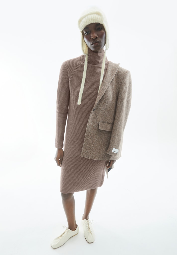 The MILLAANA knitted dress in a medium-weight, single-colored knit and knee-length cut offers you a casual, comfortable fit. The mock neckline gives the dress a stylish touch. Made from organic wool and organic cotton, it keeps you nice and warm and is extremely comfortable to wear.