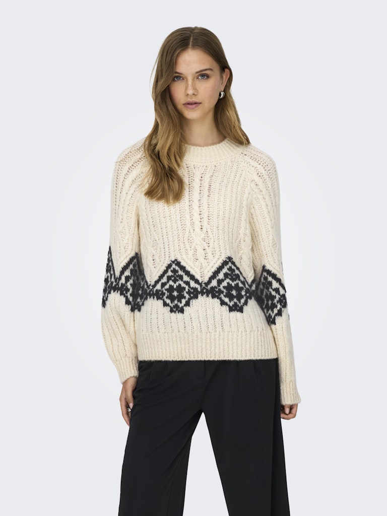 JDYNAOMI L/S RAGLAN JACQ CABLE PULL KNT