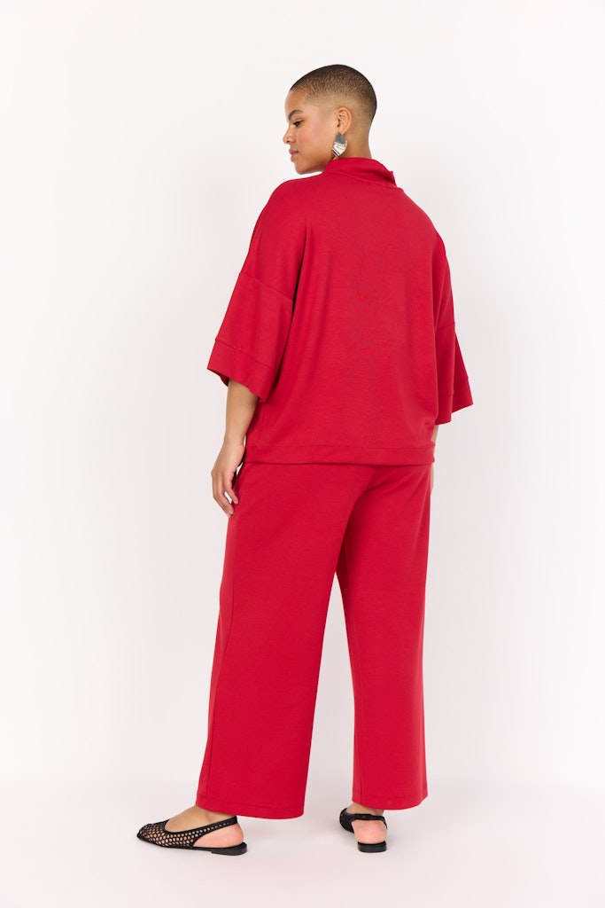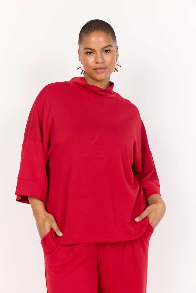 WA-SABINA 64 ist ein T-Shirt aus 48% Modal, 48% Polyester und 4% Elasthan. Das T-Shirt hat einen modischen Rundhalsausschnitt und weite 3/4-Ärmel, die für eine entspannte Silhouette sorgen. Kombiniere es mit einer schmalen Jeans oder einem eleganten Rock für einen eleganten Look.