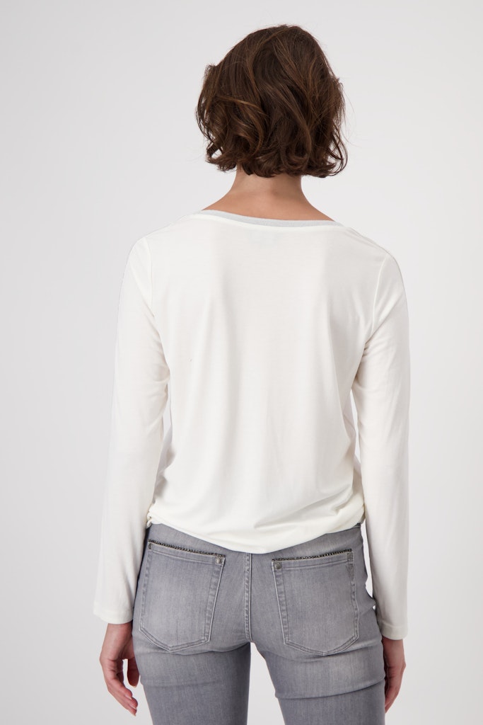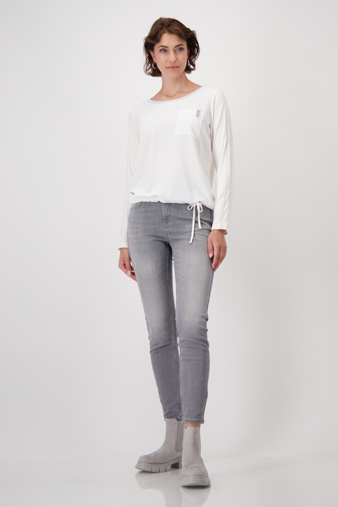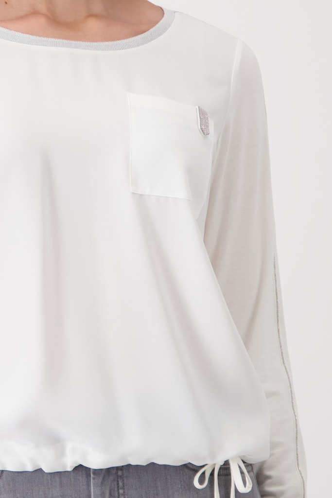 Blusenshirt aus Webware und Baumwolljersey, mit einer aufgesetzten Schmucktasche.