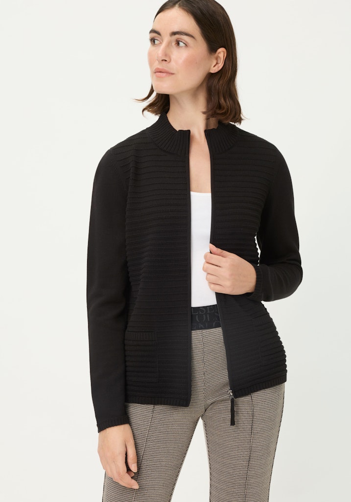 Dieser Cardigan ist der perfekte Begleiter für kühle Abende. Mit seinem Stehkragen bietet er sowohl Wärme als auch Stil. Modisch mit Muster-Mix, praktisch der Reißverschluss und die aufgesetzten Taschen. Der Cardigan hat eine entspannte Passform, die sich ideal mit verschiedenen Outfits kombinieren lässt. Die langen Ärmel und die angenehme Materialmischung machen ihn zu einem komfortablen Kleidungsstück für jeden Anlass. Länge ca. 60 cm.