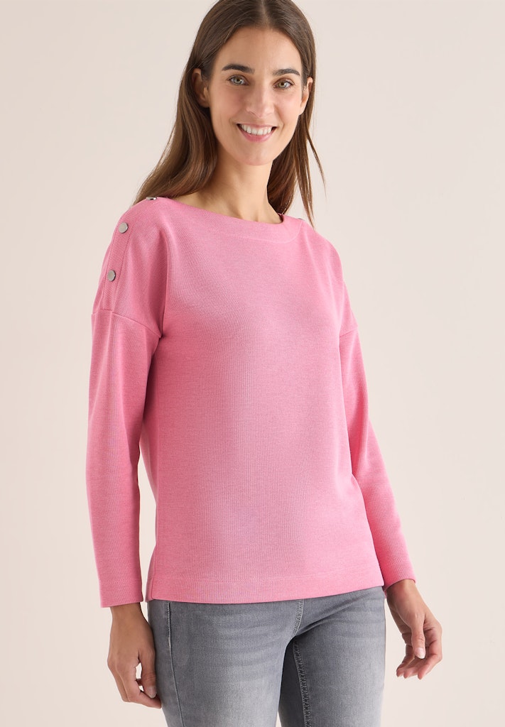 Das Damenshirt von CECIL überzeugt mit seinem femininen U-Boot-Ausschnitt und einem soften Melange Look. Knopfdetails an den Schultern setzen stilvolle Akzente, während die weiche Qualität für angenehmen Tragekomfort sorgt. Ein unkomplizierter Allrounder mit liebevollen Details. Damenshirt U-Boot-Ausschnitt Langarm Melange Look Knopfdetails an den Schultern Material: 57% Polyester, 40% Viskose, 3% Elasthan