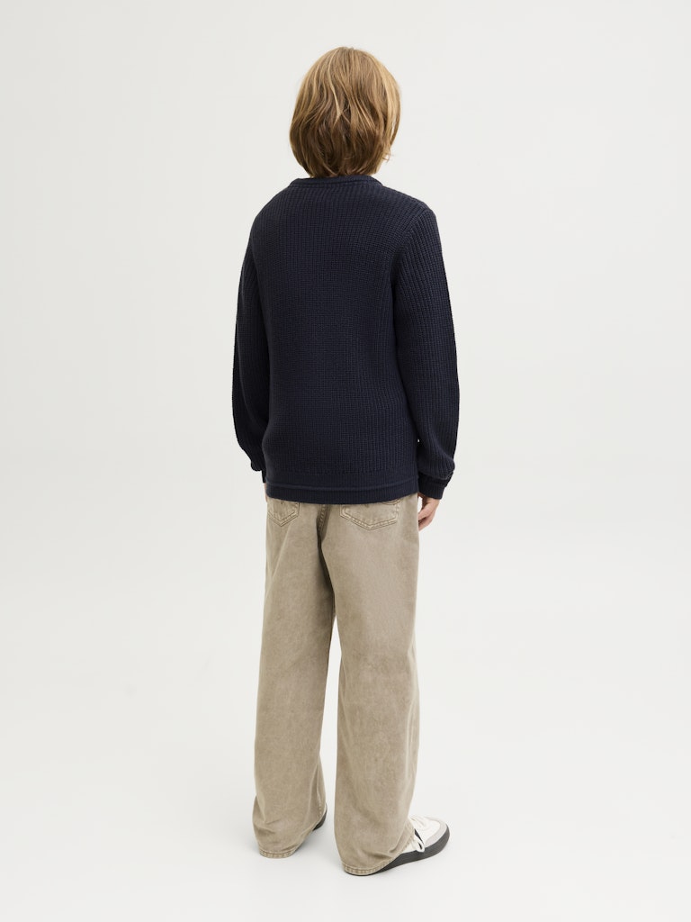 Dieses lässige Strickteil kannst du am Wochenende zu Jeans oder im Büro über einem Hemd zu einer Stoffhose tragen.Flachstrick ist ein gestricktes Gewebe, das bequem und dehnbar ist.Entdecke die aufregende Welt von Jack and Jones Junior, in der Mode durch jugendliche Energie und lebhaften Charme zum Leben erweckt wird. Unsere Kollektionen bieten eine Mischung aus neuen, trendigen Designs, die Jungen im Alter von 3-16 Jahren ansprechen. Tauche in hochwertige und bequeme Styles ein, die speziell für junge Fashion-Liebhaber entwickelt wurden. Bei Jack and Jones Junior interpretieren wir Mode für Jungs im Alter von 3 bis 16 neu, indem wir coole Passformen und moderne Styles kombinieren und dabei immer wieder Elemente aus der Erwachsenenmode einfließen lassen.. - Produkttyp : Strickpullover - Hals : Rundhalsausschnitt - Ärmel : Langarm - Manschetten : Gerippte Ärmelbündchen - Passform : Locker geschnitten