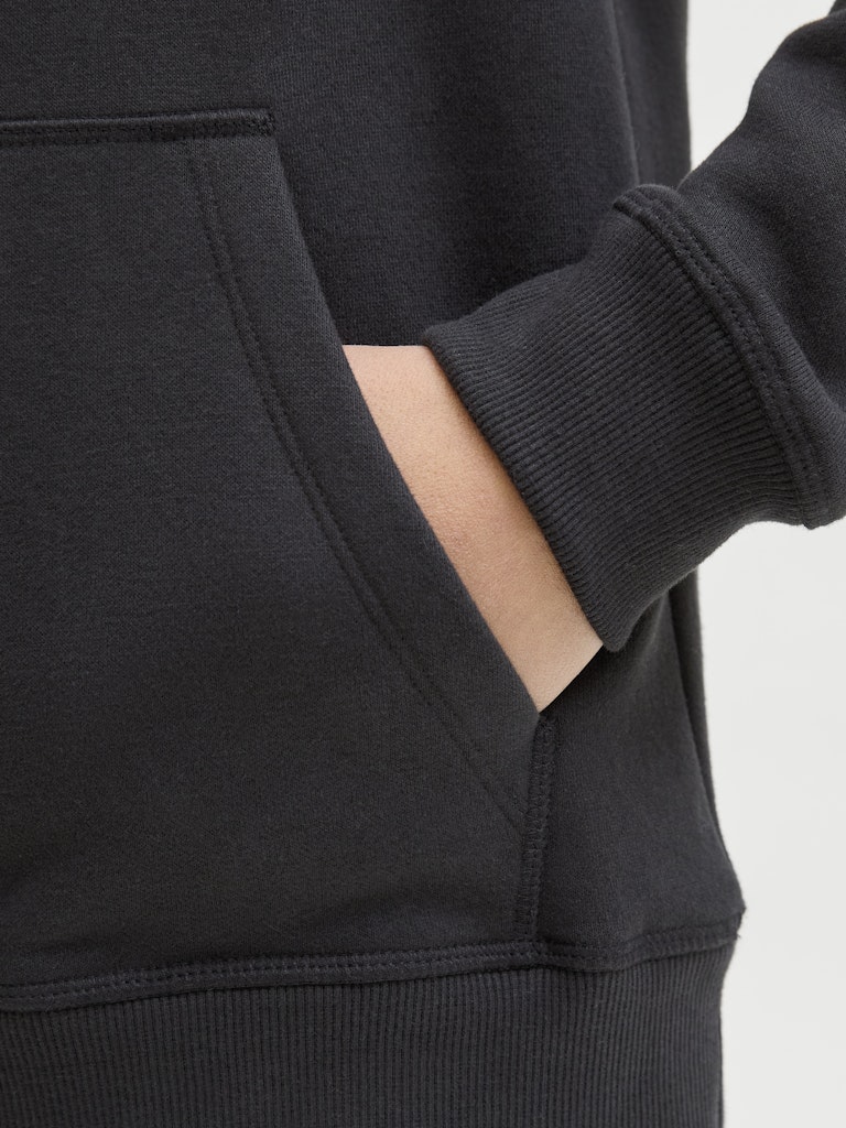 Keine Garderobe ist komplett ohne einige bewährte Basics wie Sweatpants.Baumwolle ist eine Naturfaser, die für ihre Weichheit und Atmungsaktivität bekannt ist.Entdecke die aufregende Welt von Jack and Jones Junior, in der Mode durch jugendliche Energie und lebhaften Charme zum Leben erweckt wird. Unsere Kollektionen bieten eine Mischung aus neuen, trendigen Designs, die Jungen im Alter von 3-16 Jahren ansprechen. Tauche in hochwertige und bequeme Styles ein, die speziell für junge Fashion-Liebhaber entwickelt wurden. Bei Jack and Jones Junior interpretieren wir Mode für Jungs im Alter von 3 bis 16 neu, indem wir coole Passformen und moderne Styles kombinieren und dabei immer wieder Elemente aus der Erwachsenenmode einfließen lassen.. - Produkttyp : Kapuzenpullover - Hals : Kapuze - Ärmel : Langarm - Taschen : Känguru Tasche - Print : Print auf der Vorderseite des Produkts - Passform : Locker geschnitten