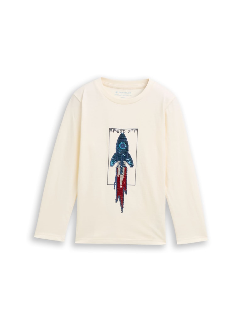 Longsleeve mit Raketen-Motiv und Wendepailletten auf der Vorderseite. Aus einem Single-Jersey-Stoff aus Baumwolle.
