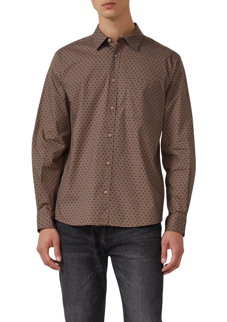 Ein lässiges Hemd mit stylischem Allover-Print, das dir durch seinen Regular Fit optimalen Komfort bietet. Die aufgesetzte Brusttasche und der klassische Kentkragen verleihen dem Casual-Look eine elegante Note. Perfekt für entspannte Tage und festliche Anlässe.