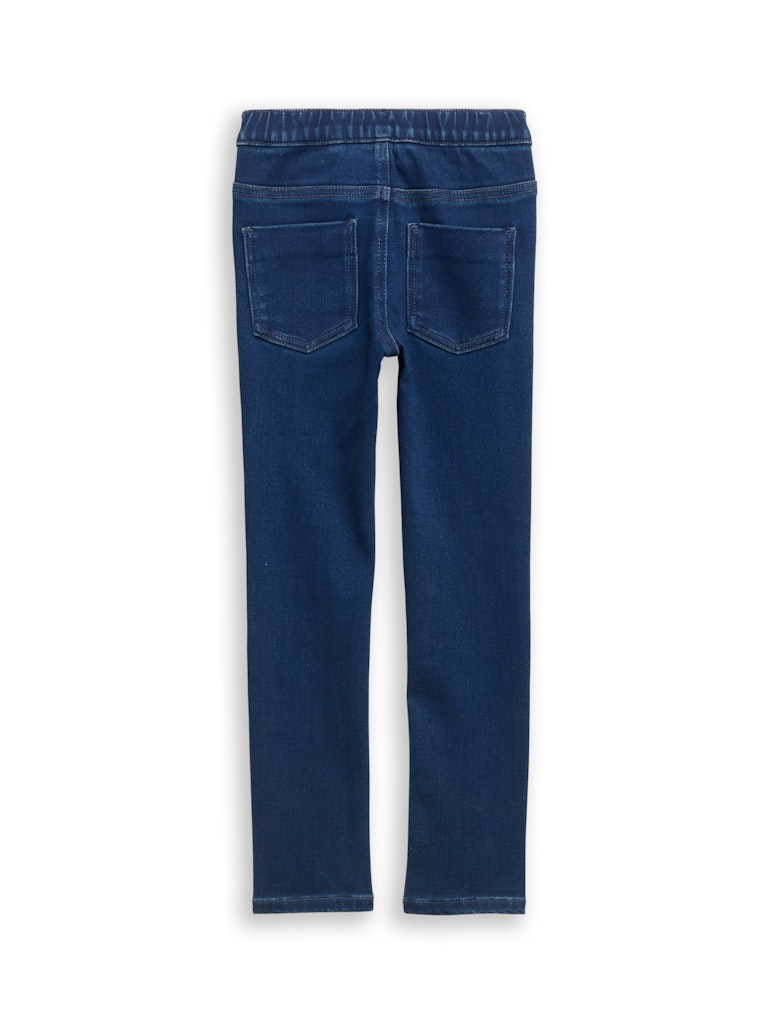 Klassische Jeanshose im Four-Pocket-Style mit seitlichen Eingriffstaschen vorne und aufgesetzten Taschen hinten. Mit Fake-Reißverschluss vorne und elastischem Gummiband im Hosenbund zum flexiblen Verstellen der Weite. Sehr hoher Stretch-Anteil sorgt für einen angenehmen Tragekomfort und mehr Bewegungsfreiheit.