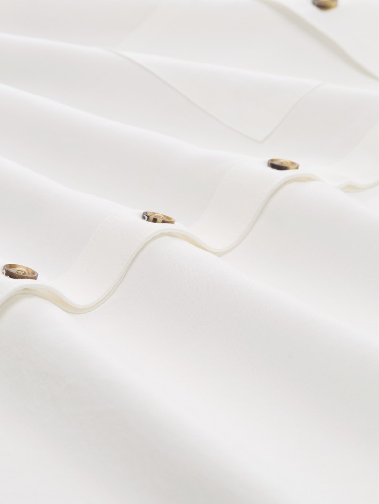 Bluse in Unifarben mit Kragen und V-Ausschnitt. Mit Seitenschlitzen und aufgesetzten Brusttaschen. Aus einem weichen Viskose-Stoff.