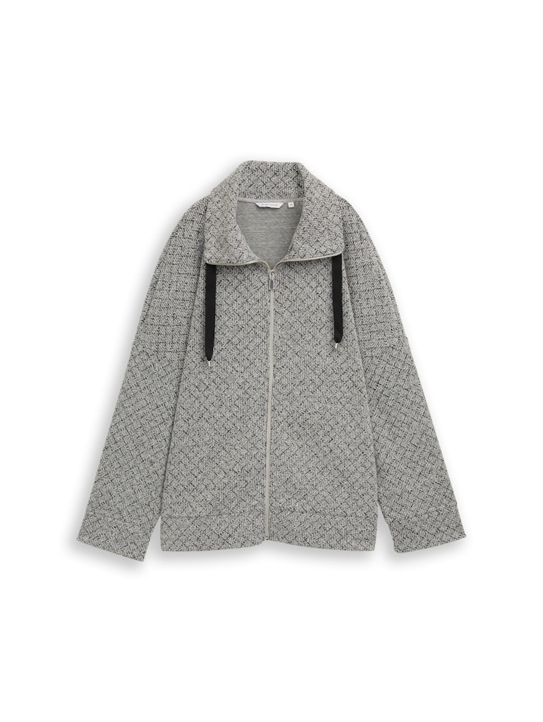 Strukturierte Sweatshirtjacke mit Kordelzug am Stehkragen und am Saum