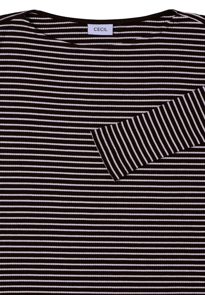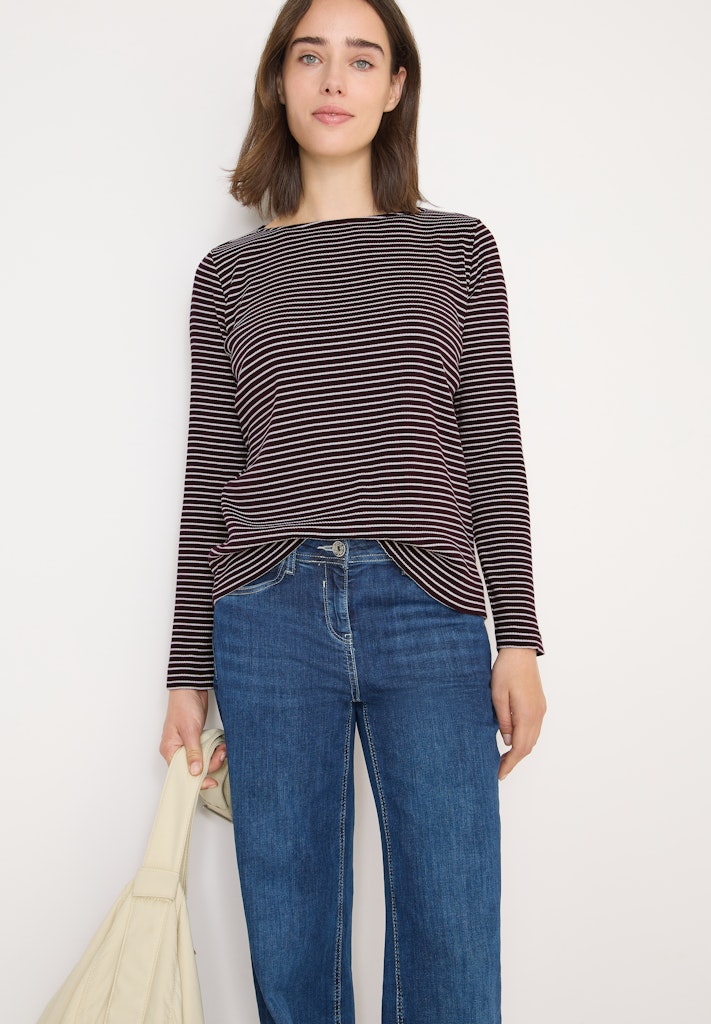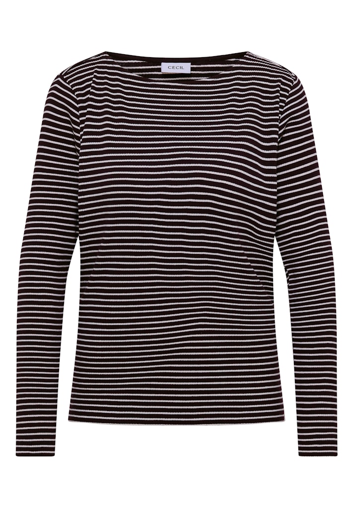 Im maritimen Look präsentiert sich dieses gestreifte Langarmshirt von CECIL für Damen. Die feine Rippstruktur schmeichelt der Figur, während der U-Boot-Ausschnitt und die langen Ärmel für eine feminine Note sorgen. Ein bequemes Shirt für deinen lässigen Alltag. Damenshirt Streifenmuster Figurschmeichelnde Rippstruktur Langarm U-Boot-Ausschnitt Material: 95% Baumwolle, 5% Elasthan