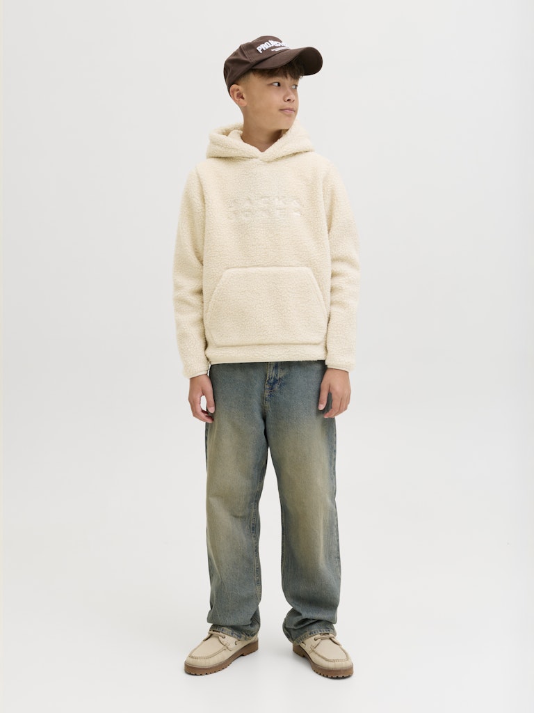 Keine Garderobe ist komplett ohne einige bewährte Basics wie Sweatpants.Angerauter Stoff mit einer weichen Innenseite. Leicht angeraute Stoffe haben eine etwas flauschigere Innenseite, die sich weich anfühlt.Entdecke die aufregende Welt von Jack and Jones Junior, in der Mode durch jugendliche Energie und lebhaften Charme zum Leben erweckt wird. Unsere Kollektionen bieten eine Mischung aus neuen, trendigen Designs, die Jungen im Alter von 3-16 Jahren ansprechen. Tauche in hochwertige und bequeme Styles ein, die speziell für junge Fashion-Liebhaber entwickelt wurden. Bei Jack and Jones Junior interpretieren wir Mode für Jungs im Alter von 3 bis 16 neu, indem wir coole Passformen und moderne Styles kombinieren und dabei immer wieder Elemente aus der Erwachsenenmode einfließen lassen.. - Produkttyp : Kapuzenpullover - Hals : Kapuze - Ärmel : Langarm - Taschen : Känguru Tasche - Details : Bestickt - Passform : Locker geschnitten
