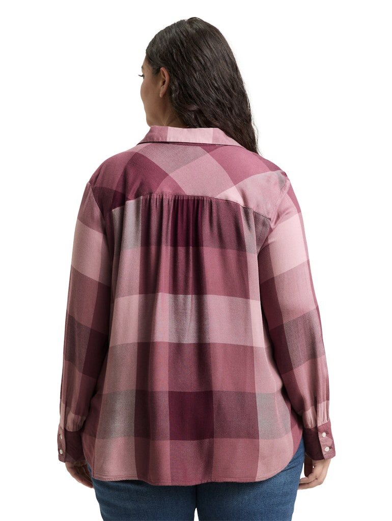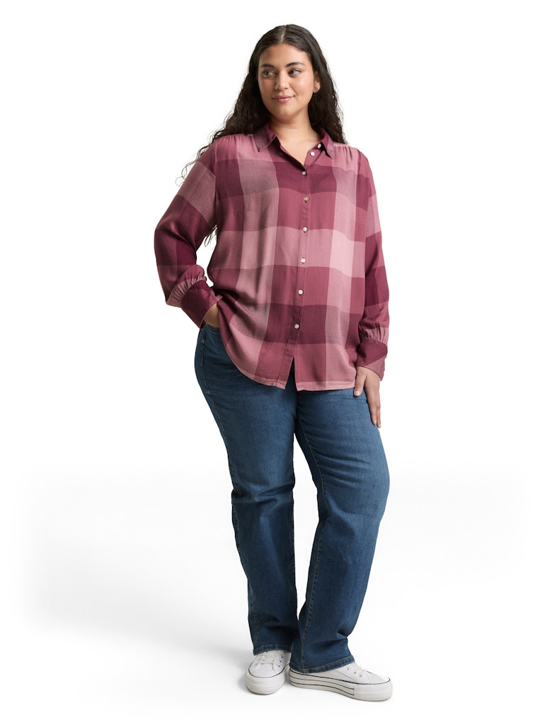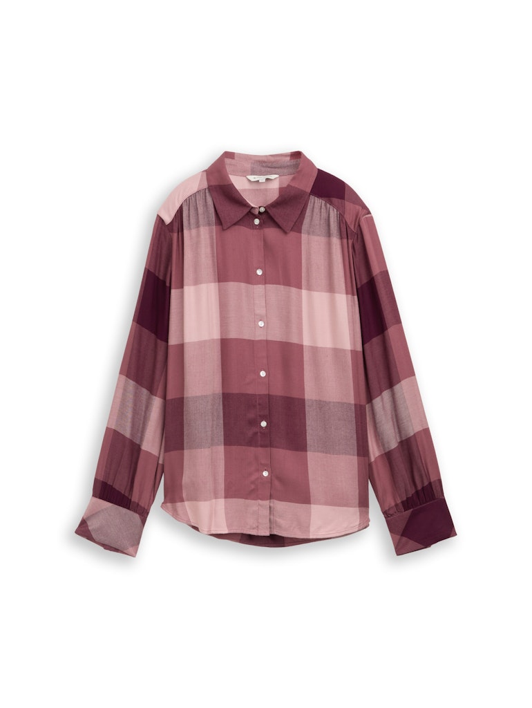 Karierte Hemdbluse aus Viskose mit leichten Raffungen an den Schultern und auf der Rückseite