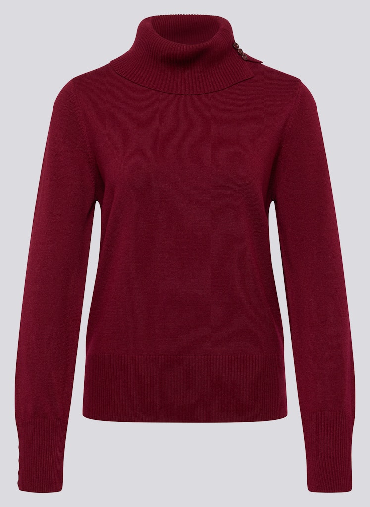 Dieser feminine Feinstrickpullover begeistert mit einem modischen Stehkragen, der seitlich mit kleinen Knöpfen verziert ist. Die feine, weiche Qualität mit Modalanteil trägt sich angenehm und wirkt edel zugleich. Breite Rippbündchen an Ärmeln und Saum sorgen für eine schöne Silhouette. In mehreren Farben erhältlich _ ideal zum Kombinieren in der Übergangszeit. Weicher Feinstrick. Dekorative Knopfleiste. Breite Rippbündchen.