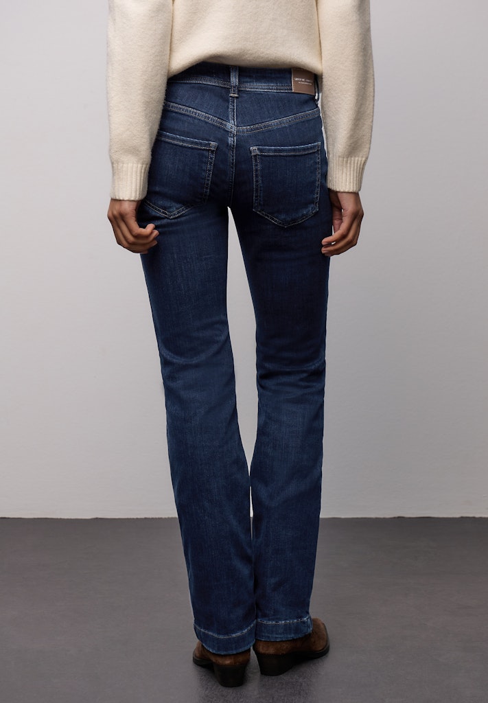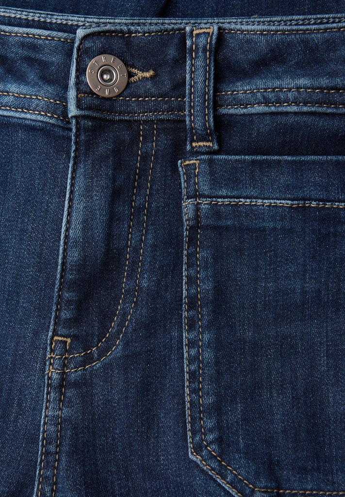 Die Bootcut Jeans von Street One für Damen im Slim Fit überzeugt mit Mid Waist, aufgesetzten Taschen und einer klassischen dunkelblauen Waschung. Der Baumwollmix mit Stretchanteil sorgt für eine figurbetonte Passform und hohen Tragekomfort. Jeanshose im Slim Fit Mid Waist und Bootcut Legs Dunkelblaue Waschung Aufgesetzte Taschen Baumwollmix mit Stretchanteil Material: 79% Baumwolle, 15% Polyester, 4% Elastomultiester, 2% Elasthan