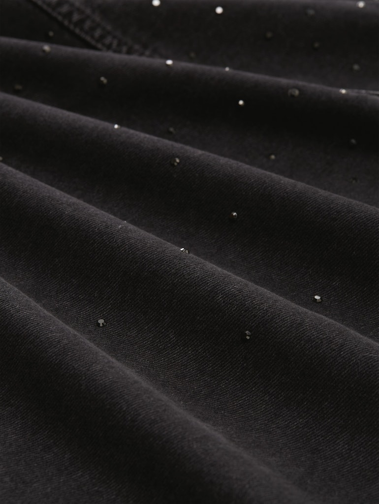 Jeansjacke mit aufgesetzten Brusttaschen und Strasssteinen auf der Vorder- und Rückseite