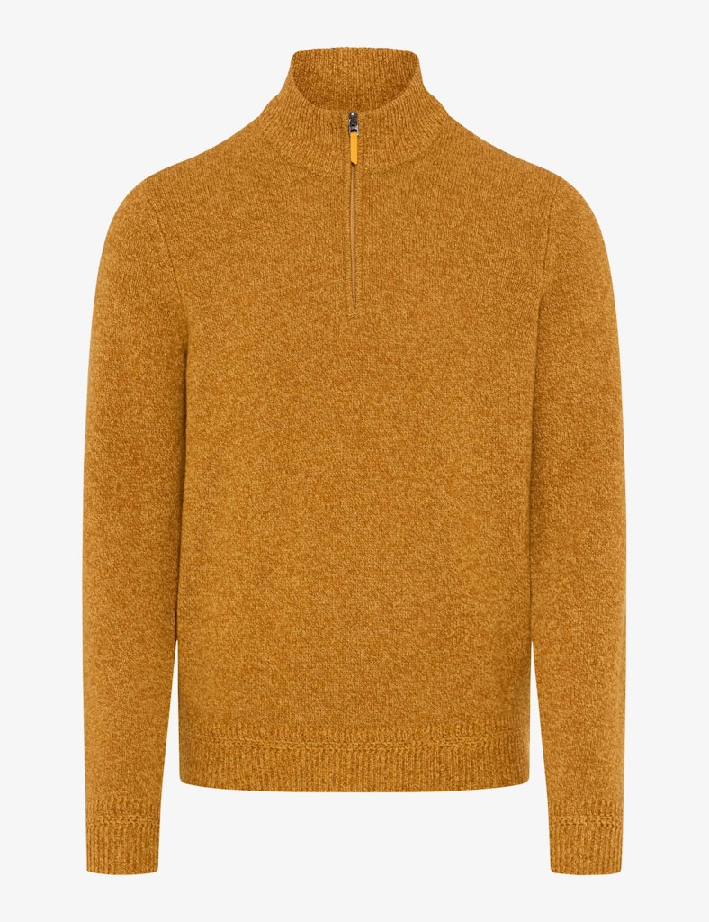 Männermode auf höchstem Niveau: Der Strickpullover im Style STEFFEN ist ein Must-Have im Winter, das Komfort und maskulinen Stil gekonnt interpretiert. Die markante Troyer-Form, geprägt vom sportiven Reißverschluss und dem hohen Kragen, sorgt an kühleren Tagen für angenehme Wärme im modernen Look. Die besondere Mouliné-Optik bringt durch ihre fein melierte Struktur eine lebendige Tiefe ins Design und unterstreicht die lässige Eleganz. Harmonisch fügt sich die hochwertige Materialwahl ins Gesamtbild: Der spürbar weiche Lambswool-Mix schmiegt sich sanft an und bietet dank seiner natürlichen Eigenschaften nicht nur angenehme Wärme, sondern überzeugt auch durch Formbeständigkeit und Langlebigkeit. Als Knitted Jersey präsentiert sich dieser Herrenpullover in einer besonders soften, gepflegten Strickqualität.