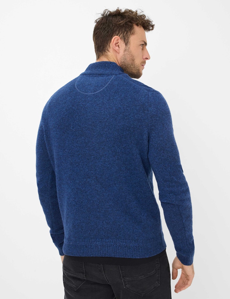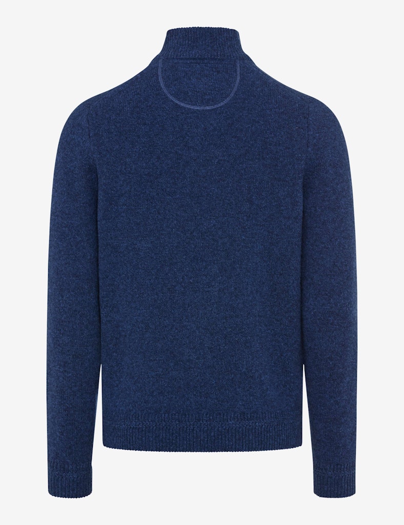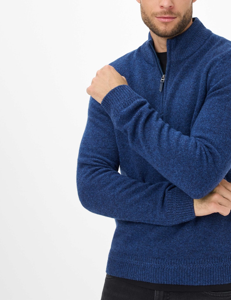 Männermode auf höchstem Niveau: Der Strickpullover im Style STEFFEN ist ein Must-Have im Winter, das Komfort und maskulinen Stil gekonnt interpretiert. Die markante Troyer-Form, geprägt vom sportiven Reißverschluss und dem hohen Kragen, sorgt an kühleren Tagen für angenehme Wärme im modernen Look. Die besondere Mouliné-Optik bringt durch ihre fein melierte Struktur eine lebendige Tiefe ins Design und unterstreicht die lässige Eleganz. Harmonisch fügt sich die hochwertige Materialwahl ins Gesamtbild: Der spürbar weiche Lambswool-Mix schmiegt sich sanft an und bietet dank seiner natürlichen Eigenschaften nicht nur angenehme Wärme, sondern überzeugt auch durch Formbeständigkeit und Langlebigkeit. Als Knitted Jersey präsentiert sich dieser Herrenpullover in einer besonders soften, gepflegten Strickqualität.