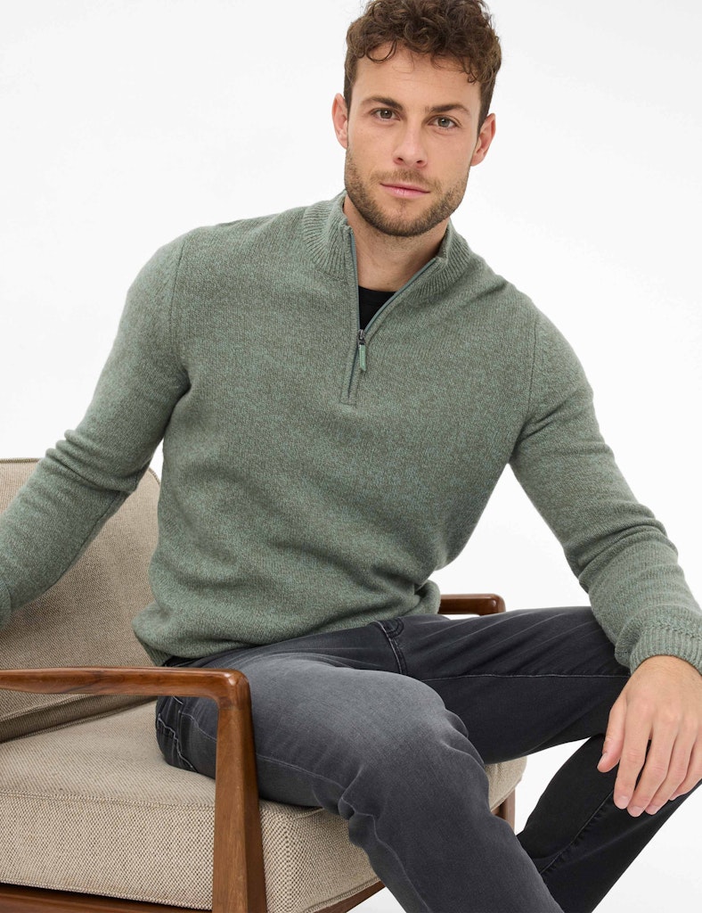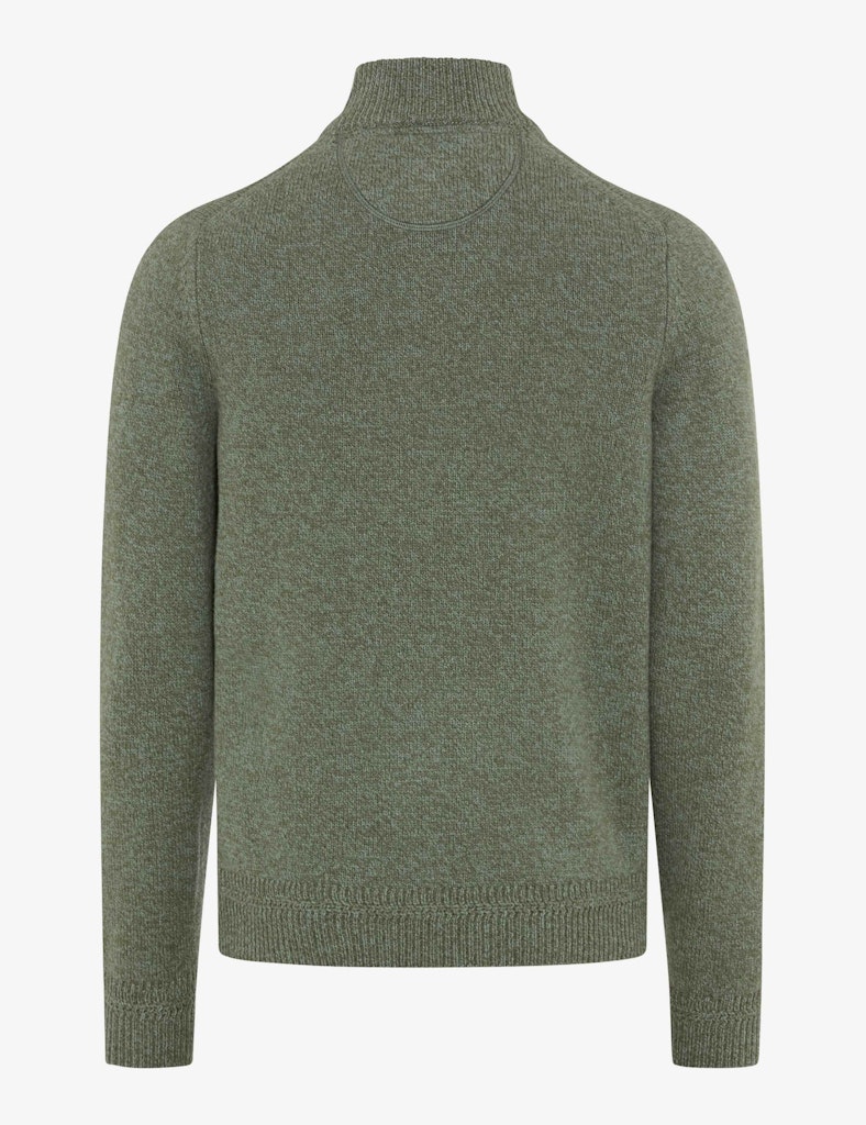 Männermode auf höchstem Niveau: Der Strickpullover im Style STEFFEN ist ein Must-Have im Winter, das Komfort und maskulinen Stil gekonnt interpretiert. Die markante Troyer-Form, geprägt vom sportiven Reißverschluss und dem hohen Kragen, sorgt an kühleren Tagen für angenehme Wärme im modernen Look. Die besondere Mouliné-Optik bringt durch ihre fein melierte Struktur eine lebendige Tiefe ins Design und unterstreicht die lässige Eleganz. Harmonisch fügt sich die hochwertige Materialwahl ins Gesamtbild: Der spürbar weiche Lambswool-Mix schmiegt sich sanft an und bietet dank seiner natürlichen Eigenschaften nicht nur angenehme Wärme, sondern überzeugt auch durch Formbeständigkeit und Langlebigkeit. Als Knitted Jersey präsentiert sich dieser Herrenpullover in einer besonders soften, gepflegten Strickqualität.