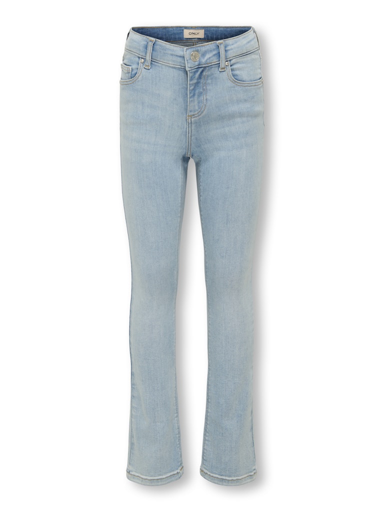 ONLY GIRLS Jeans sind sowohl bequem als auch super stylisch! Mit Denim in ihrer DNA bieten sie einen vielseitigen Look, der sich für jeden Anlass leicht stylen lässt. Sie wurden mit dem Fokus auf Komfort und Bewegungsfreiheit entwickelt und ermöglichen es Ihnen, den ganzen Tag über aktiv zu bleiben. Kombinieren Sie sie mit einem coolen T-Shirt und Turnschuhen für ein entspanntes und modernes Outfit.ONLY GIRLS ist für Mädchen, die es lieben, ihren Stil mit Selbstvertrauen auszudrücken. Die Kollektionen bieten die perfekte Mischung aus trendigem Denim, femininen Details und Rock'n'Roll-inspirierten Styles. Unsere Kleidung ist so konzipiert, dass sie jungen Modeliebhabern die Möglichkeit gibt, sich sowohl mit Alltagslooks als auch mit festlichen Outfits abzuheben. - Produkttyp : Flared Fit Jeans - Verschluss : Knopfleiste - Taschen : Gesäßtaschen, Münztasche, Taschen vorn - Details : Gürtelschlaufen - Passform : Diese Jeans mit Schlag schmiegt sich deinen Hüften und Oberschenkeln an und wird ab dem Knie weiter - Achtung : WARNUNG! Erstickungsgefahr - Kleinteile. Nicht für Kinder unter 3 Jahren geeignet