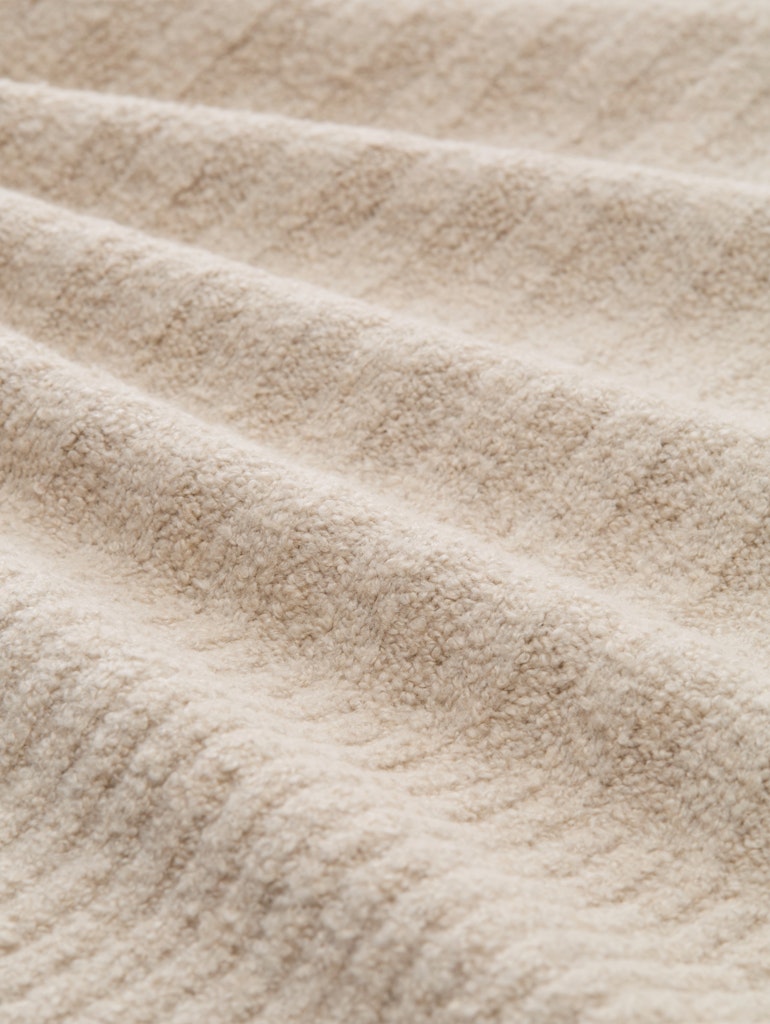 Loose Fit Cardigan mit Troyer-Kragen, welcher auch zum Stehkragen verschlossen werden kann. Aus einem weichen Strickmaterial mit Wollanteil für ein besonders warmes und angenehmes Tragegefühl.