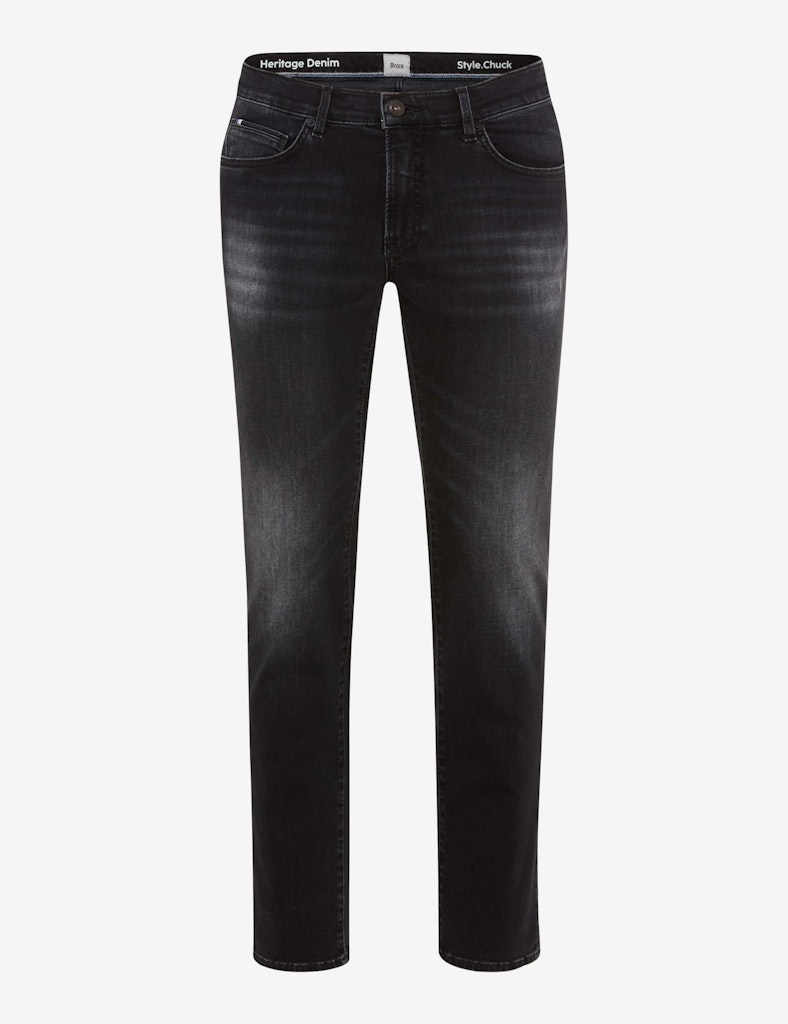 Lässig-maskuline Outfits gelingen ganz einfach mit der Five-Pocket-Jeans im Style CHUCK. Die gerade Form im Modern Fit mit normaler Leibhöhe sorgt für eine zeitgemäße Silhouette und verbindet Komfort mit urbaner Coolness. Charakteristische Details wie aufgesetzte Gesäßtaschen, Coinpocket und typische Einschubtaschen treffen auf markante Used-Effekte und abgestimmtes Stitching, wodurch ein authentisches Gesamtbild entsteht. Der hochwertige Baumwollmix der Herrenjeans garantiert ein angenehmes, natürliches Tragegefühl, während der Stretch-Anteil flexible Bewegungsfreiheit bietet und Polyester die Strapazierfähigkeit erhöht. So überzeugt die Hose in einem wertigen Heritage Denim durch ihre robuste, langlebige Struktur und verspricht einen unverwechselbaren Look.