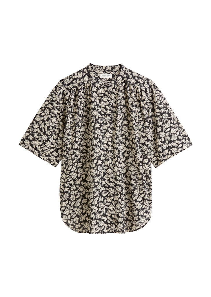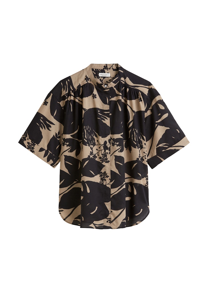 Lässige Alternative zur klassischen Bluse und zum zeitlosen T-Shirt: das Blusen-Shirt. Locker geschnittenes Regular-Fit-Modell aus hochwertigem, bedrucktem Bio-Baumwoll-Voile mit weichem Silky-Touch. Modell mit angeschnittenen Ärmeln und markant geraffter Schulterpartie. Mit schmalem Kentkragen, schmaler, halber Knopfleiste und leicht geschwungener Saumlinie. Das wandelbare Modell ist ein zuverlässiger Begleiter und lässt sich mühelos mit vielen vorhandenen Unterteilen kombinieren.
