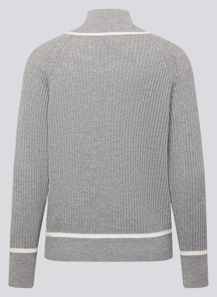 Der modern gehaltene Feinstrickpullover überzeugt durch seine geradlinige Form mit betonter Rippstruktur. Der hohe Stehkragen sorgt für eine angenehme Wärme am Hals, während schmale Kontraststreifen an Kragen, Saum und Ärmeln einen dezenten Akzent setzen. Dank des Materialmixes aus Polyester, Viskose und Polyamid trägt sich der Pullover angenehm weich und formbeständig _ perfekt für stilvolle Alltagslooks. Gerippter Stehkragen. Dezente Kontrastdetails. Feine Rippstruktur. Weicher, formstabiler Strick. Gerade, zeitlose Passform.
