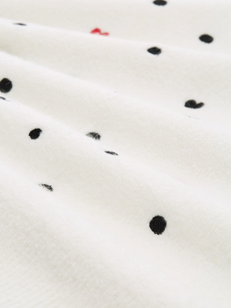 Weicher Pullover mit Herz- und Punkt-Stickereien auf der Vorderseite und an den Ärmeln