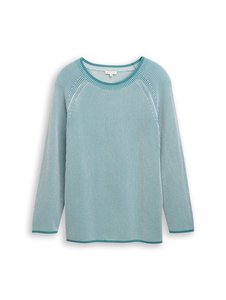 Fein gestreifter Pullover mit Rundhalsausschnitt. Aus weichem Baumwollstoff in Strickqualität.