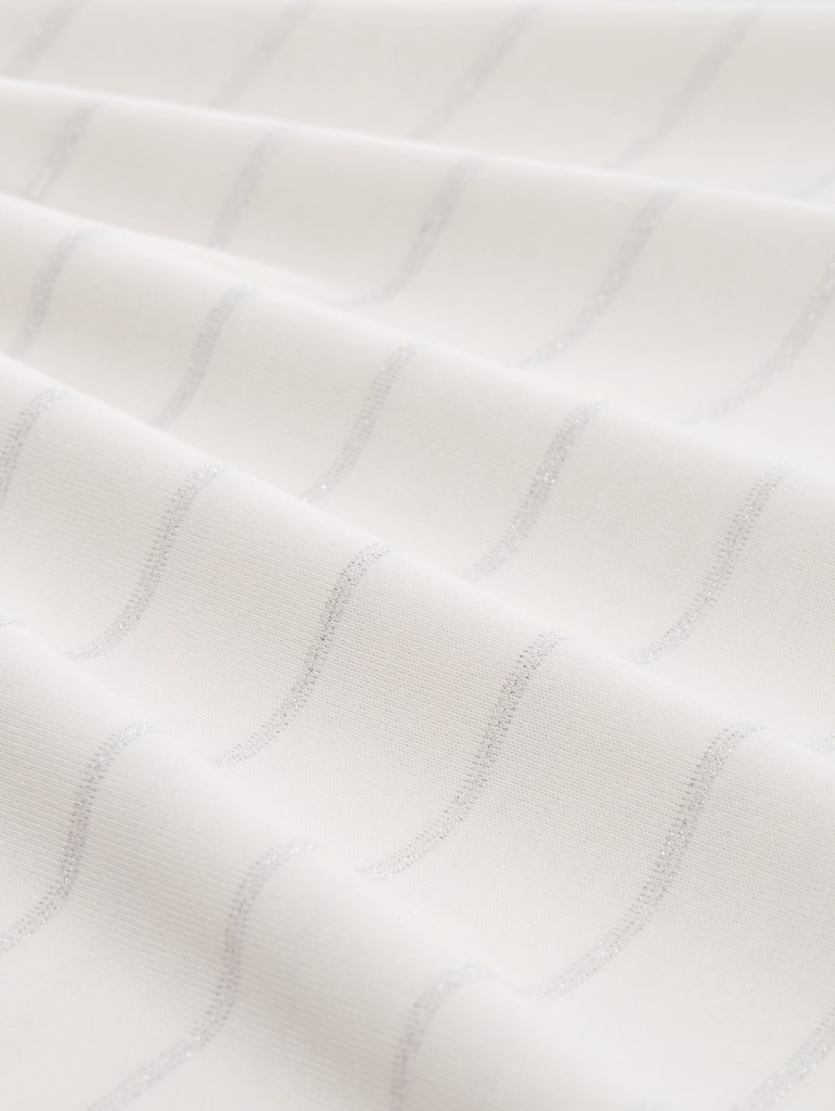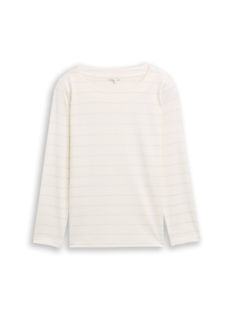 Longsleeve mit Rundhalsausschnitt und Streifenmuster. Aus einem Single-Jersey-Stoff mit Lurex Einsatz für leichten Glitzer-Effekt.