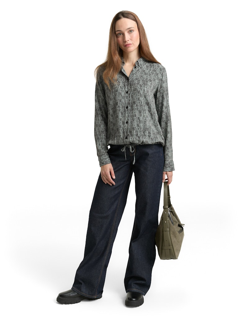 Gemusterte Bluse mit Kordelzug am Saum. Aus einem weichen Viskose-Stoff.