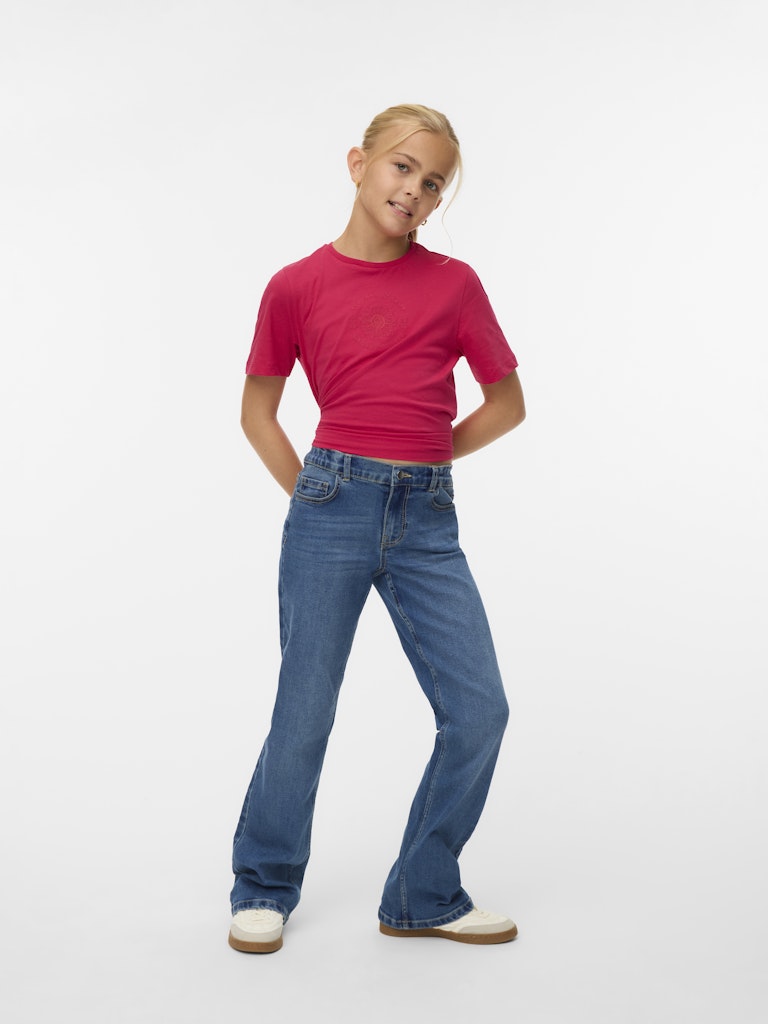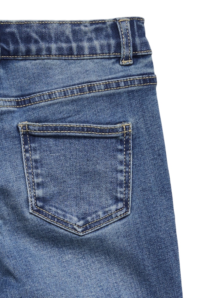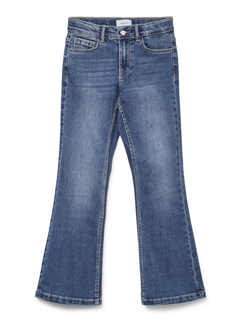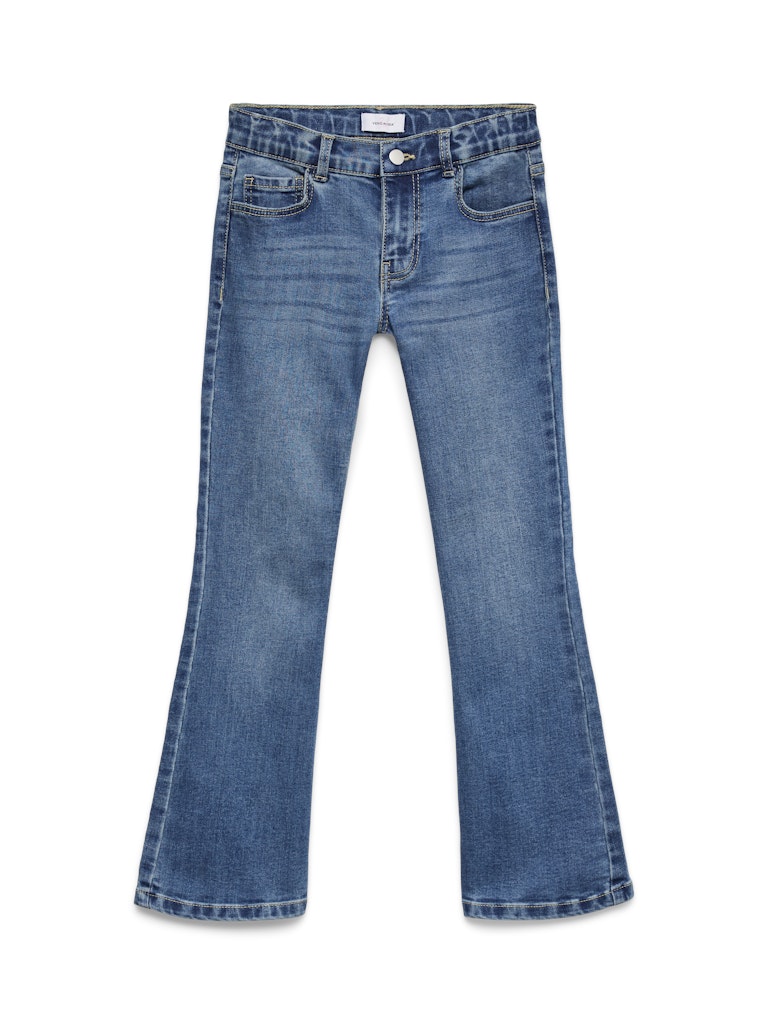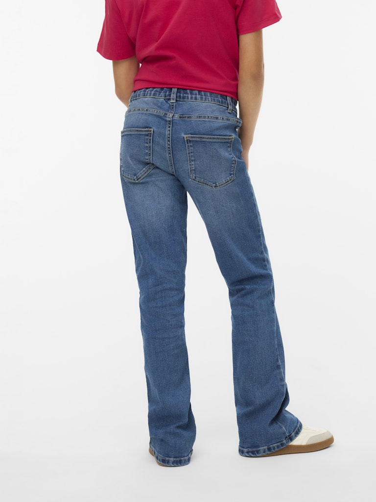 Denim ist ein echter Klassiker, der zu jedem Anlass passt. Das Design dieser Jeans ist genau auf die Bedürfnisse deiner Tochter zugeschnitten, so dass sie weder auf Komfort noch auf Stil verzichten muss. Zeit für eine neue Jeans? Bei uns findest du die richtige Jeans für deine Tochter. - Produkttyp : Flared Fit Jeans - Verschluss : Reißverschluss - Taschen : Gesäßtaschen, Münztasche, Taschen vorn - Taille : Hohe Taille - Waschen : Stonewashed für einen Used-Look mit Faded-Effekten - Passform : Slim Fit