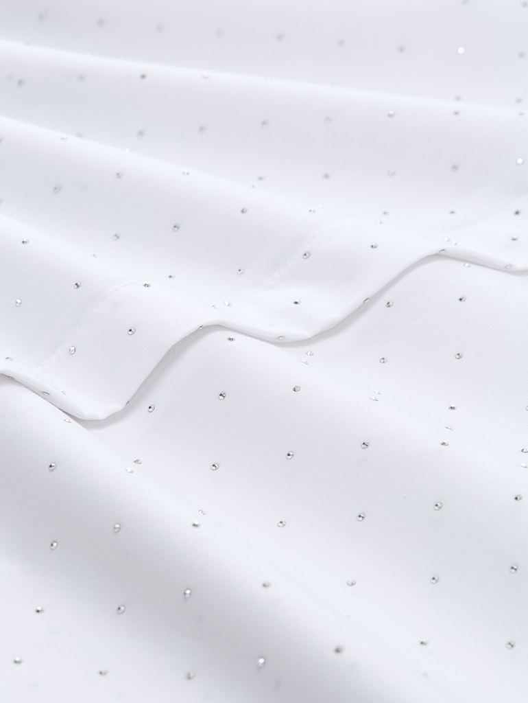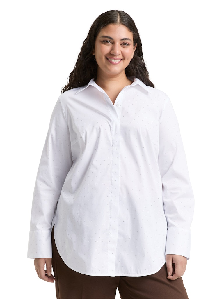 Locker geschnittene Hemdbluse mit Strasssteinen und verdeckter Knopfleiste