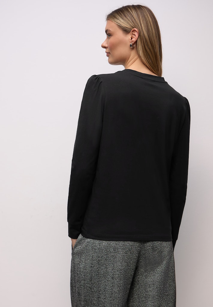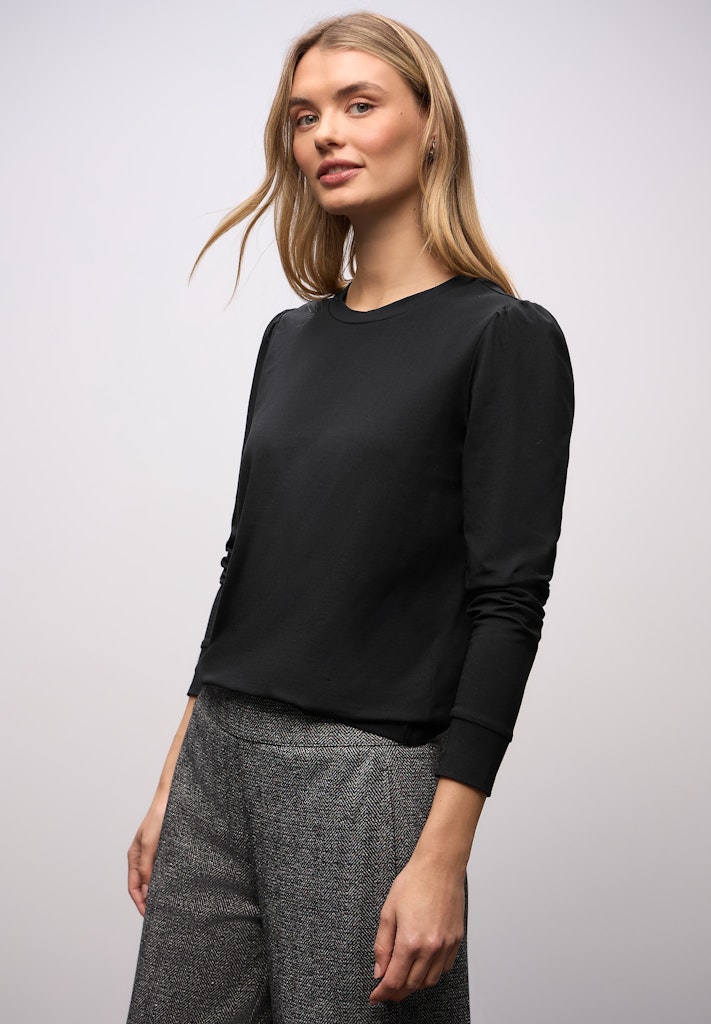 Das Shirt von Street One für Damen bringt mit der dezenten Raffung an den Schultern einen femininen Akzent in dein Outfit. Der Rundhalsausschnitt und die Baumwollqualität mit Stretchanteil sorgen für angenehmen Tragekomfort. Die schlanke Silhouette macht es vielseitig kombinierbar. Perfekt für stilvolle Everyday-Looks mit einem Hauch Raffinesse. Basic Shirt Raffung an der Schulter Rundhalsausschnitt Langarm Baumwollqualität mit Stretchanteil Material: 95% Baumwolle, 5% Elasthan