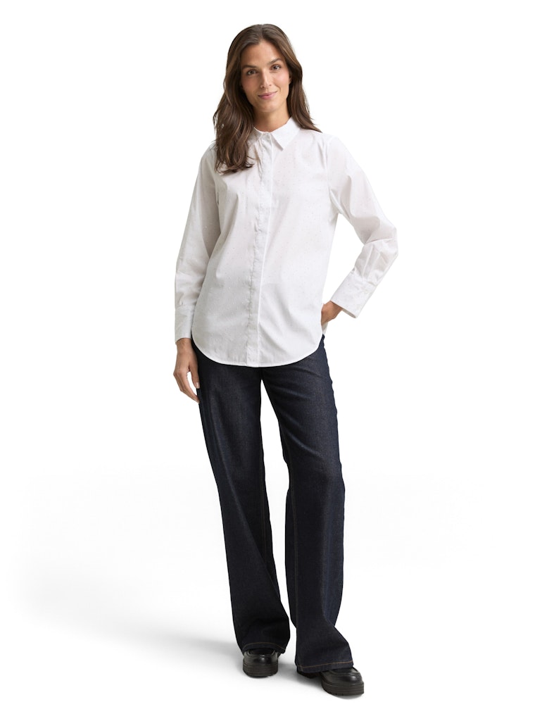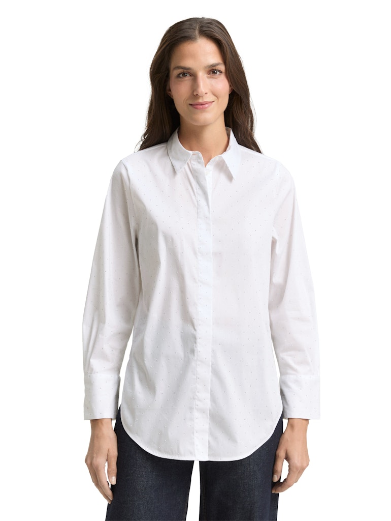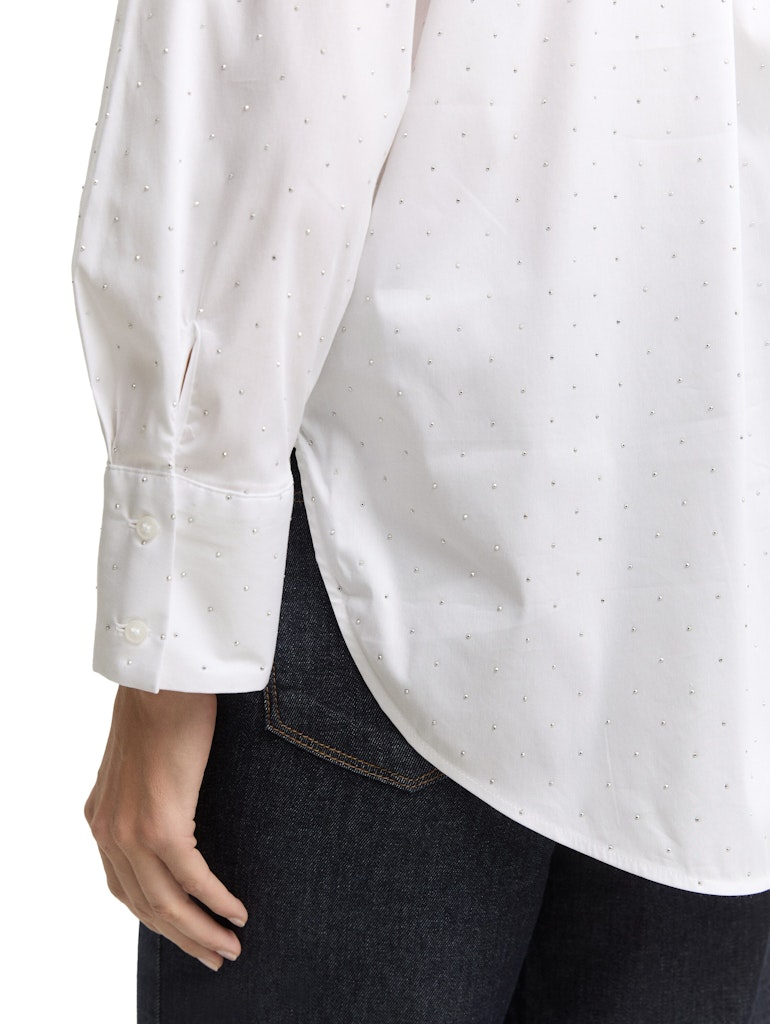 Locker geschnittene Hemdbluse mit Strasssteinen und verdeckter Knopfleiste