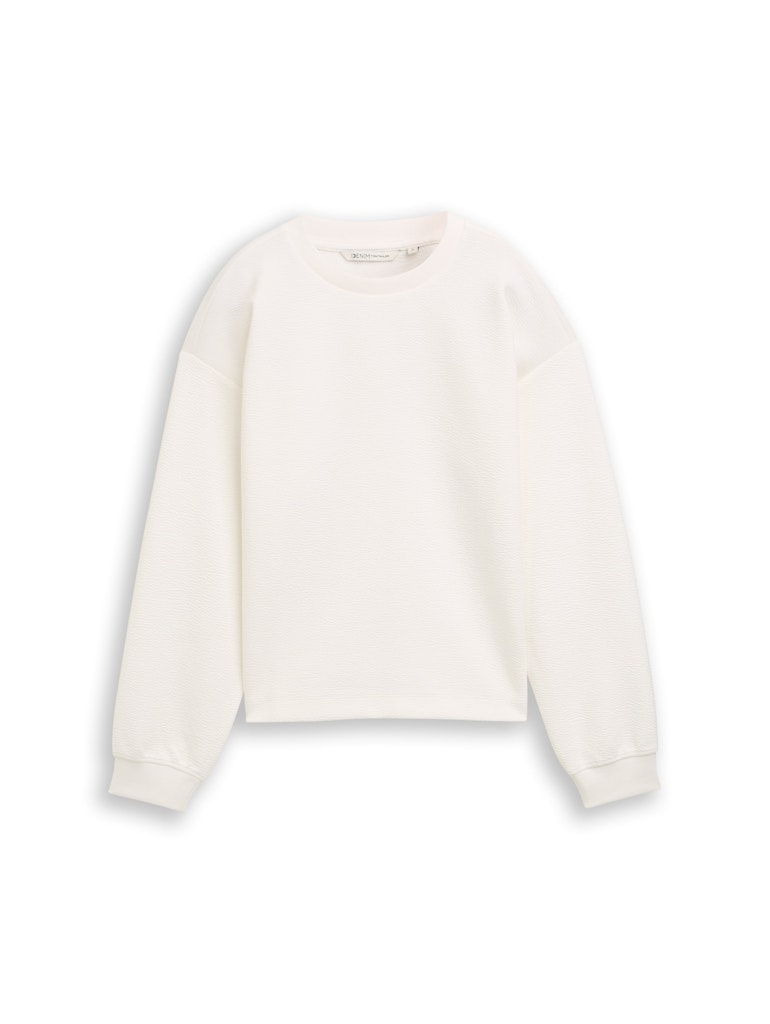 Strukturiertes, unifarbenes Sweatshirt mit überschnittenen Schultern und offenem Saum.