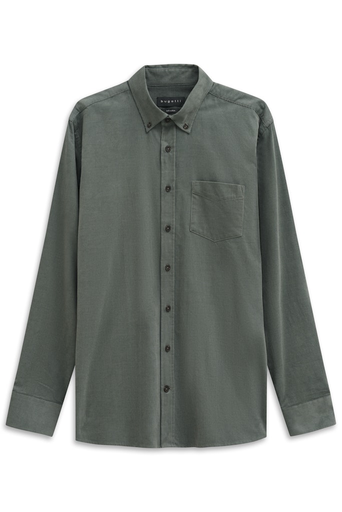 Uni Cordhemd, Button Down Kragen, aufgesetzte Brusttasche, bugatti label in der Seitennaht