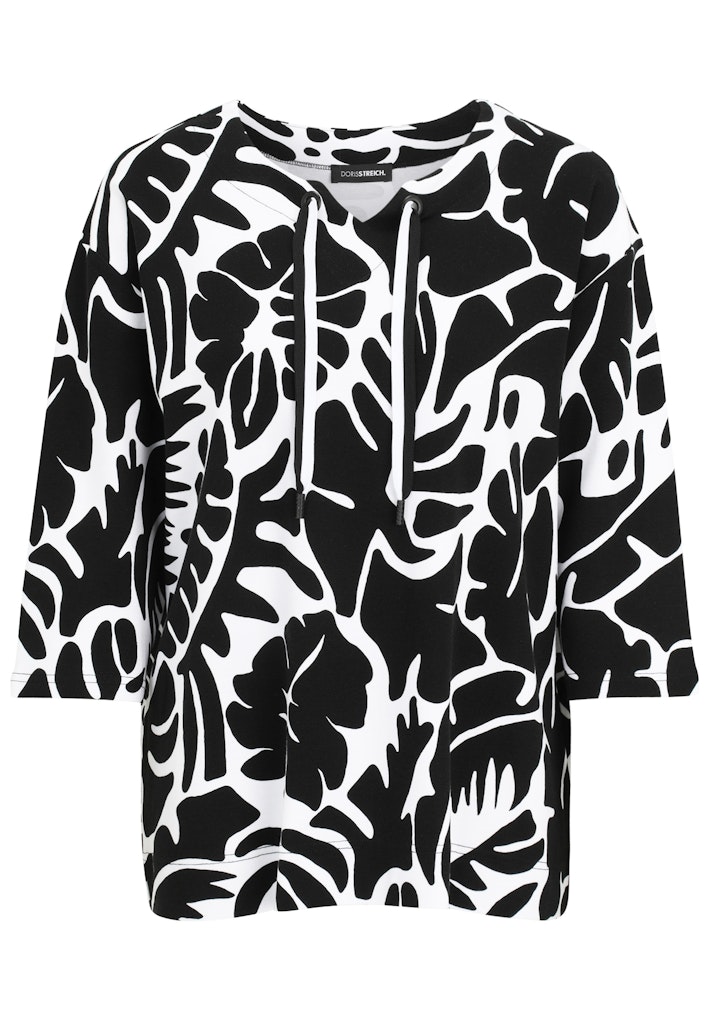 Das edle Sweatshirt von Doris Streich hat einen cleanen verfremdeten Blätter-Print. Der dekorative Halsausschnitt mit seinen schwarz-weiß gestreiften Bändern ist ein Hingucker. Die 3/4-Ärmel runden das Sweatie ab. Sweaties ab. Die elastische