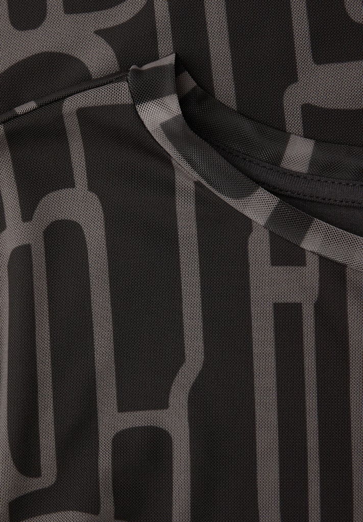 Das Langarmshirt von Street One für Damen fällt durch sein grafisches Allover-Muster und feine Mesh-Qualität auf. Locker fallender Stoff sorgt für eine feminine Silhouette. Ideal für modische Looks mit besonderem Touch. Langarmshirt Grafisches Muster Elastischer Saum Rundhalsausschnitt Langarm mit elastischen Bündchen Material: 95% Polyester, 5% Elasthan