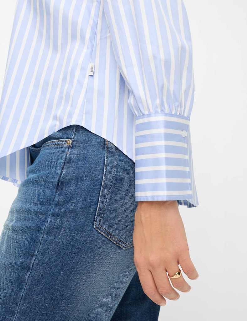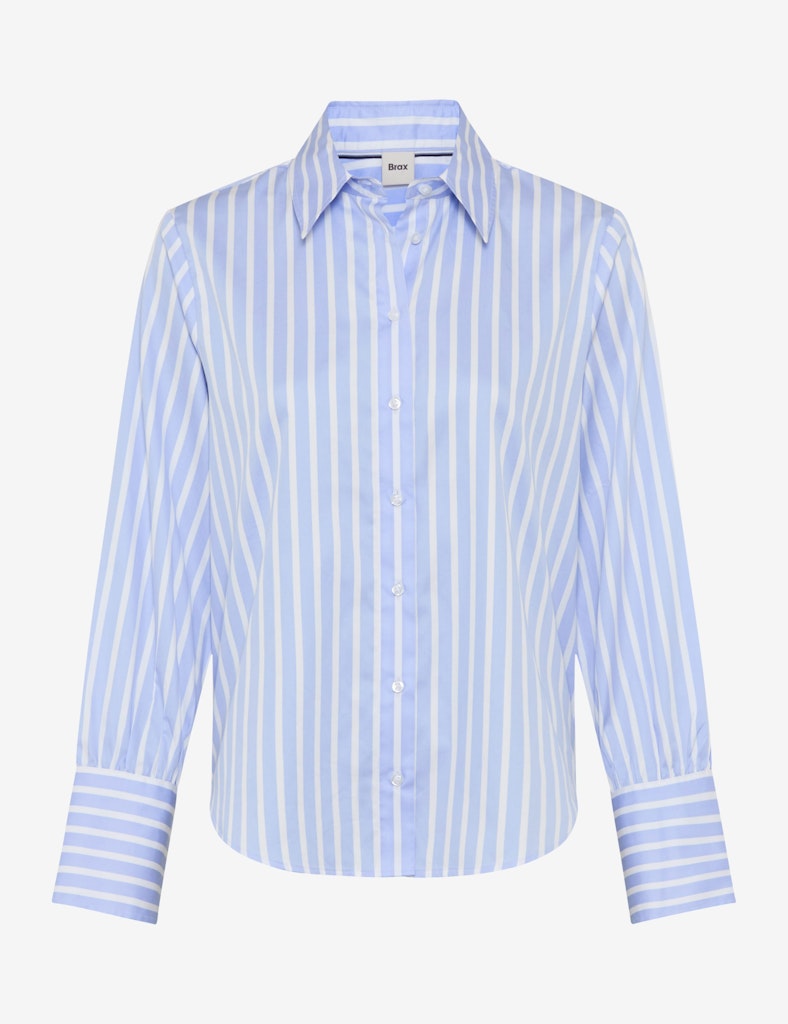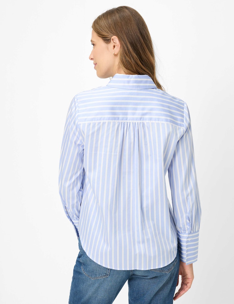 Stilvolle Streifen setzen ein klares Statement: Die Hemdbluse im Style VICA steht für lässige Eleganz und Komfort. Das moderne Design präsentiert sich mit einer entspannten Oversized-Silhouette, die durch den klassischen Hemdkragen eine stilvolle Balance aus Trendgespür und Zeitlosigkeit schafft. Die durchgehende Knopfleiste, feine Manschetten sowie dezente Raffungen an der Schulterpasse verleihen der Damenbluse eine subtile Raffinesse, während das Längsstreifenmuster den Look optisch streckt und für einen frischen, dynamischen Akzent sorgt. Die hochwertige Baumwolle sorgt nicht nur für ein angenehm weiches Gefühl auf der Haut, sondern überzeugt auch durch hohe Atmungsaktivität und Pflegeleichtigkeit. Satin begeistert zusätzlich mit einem edlen, dezenten Glanz und fließender Geschmeidigkeit, die den femininen Charakter und das luxuriöse Tragegefühl betonen.