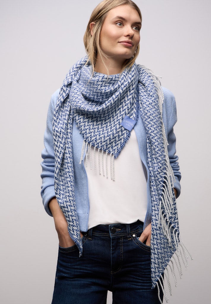 Dieses Dreieckstuch von Street One für Damen setzt mit seinem grafischen Muster und Fransen charmante Akzente. Der weiche Stoff sorgt für angenehmen Tragekomfort. Ein unkompliziertes Tuch für jeden Tag, ideal für stylische Layering-Looks. Damentuch Modische Fransen Grafisches Muster Angenehmer Tragekomfort Material: 55% Polyester, 35% Viskose, 10% Metallfasern