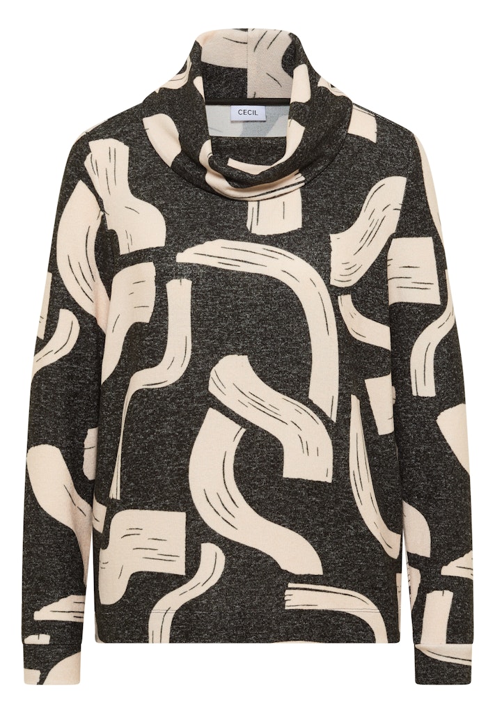 Das Langarmshirt von CECIL für Damen vereint ein modernes grafisches Muster mit lässigem Melange-Look. Der große Kragen verleiht dem Design eine besondere Note, während der Viskosemix mit Stretchanteil für bequemen Sitz sorgt. Perfekt für entspannte Styles. Langarmshirt Grafisches Muster Melange-Look Großer Kragen Viskosemix mit Stretchanteil Material: 67% Viskose, 28% Polyester, 5% Elasthan