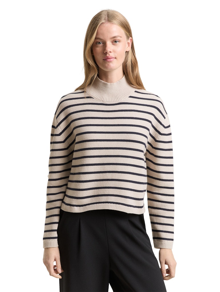 Gestreifter Pullover im Relaxed Fit mit Schlitz hinten am Stehkragen