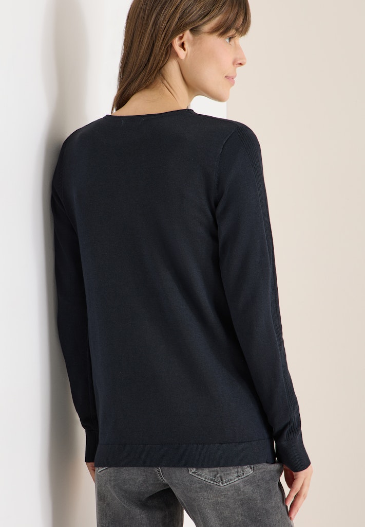 Der Strickpullover von CECIL für Damen ist mit seinem V-Ausschnitt und dem soften Baumwollmix ein echtes Wohlfühlteil. In Unifarbe und mit klassischen Rippbündchen an Saum und Ärmeln passt er perfekt zu Jeans oder Rock. Ein bequemes Basic für deine Garderobe. Strickpullover Casual V-Ausschnitt Langarm Bequem und vielseitig Material: 60% Baumwolle, 40% Viskose