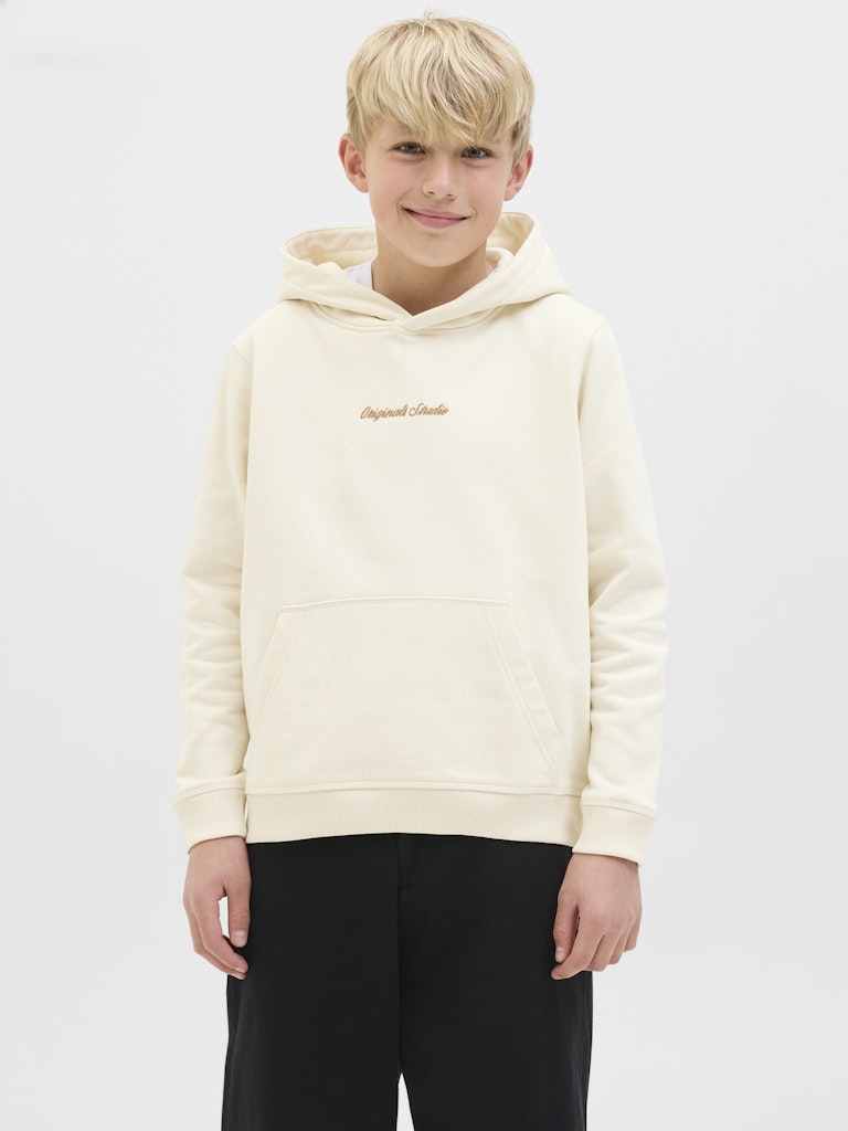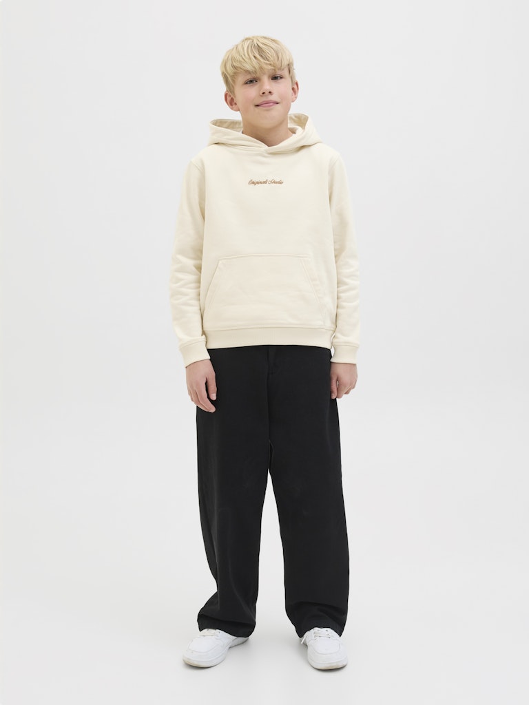 Keine Garderobe ist komplett ohne einige bewährte Basics wie Sweatpants.Leichter und angerauter Stoff mit einer weichen Innenseite. Angeraute Stoffe haben eine flauschige Innenseite, die sich weich anfühlt.Entdecke die aufregende Welt von Jack and Jones Junior, in der Mode durch jugendliche Energie und lebhaften Charme zum Leben erweckt wird. Unsere Kollektionen bieten eine Mischung aus neuen, trendigen Designs, die Jungen im Alter von 3-16 Jahren ansprechen. Tauche in hochwertige und bequeme Styles ein, die speziell für junge Fashion-Liebhaber entwickelt wurden. Bei Jack and Jones Junior interpretieren wir Mode für Jungs im Alter von 3 bis 16 neu, indem wir coole Passformen und moderne Styles kombinieren und dabei immer wieder Elemente aus der Erwachsenenmode einfließen lassen.. - Produkttyp : Kapuzenpullover - Hals : Kapuze - Ärmel : Langarm - Ärmel : Eingesetzte Ärmel - Taschen : Känguru Tasche - Details : Angeraute Innenseite - Passform : Locker geschnitten